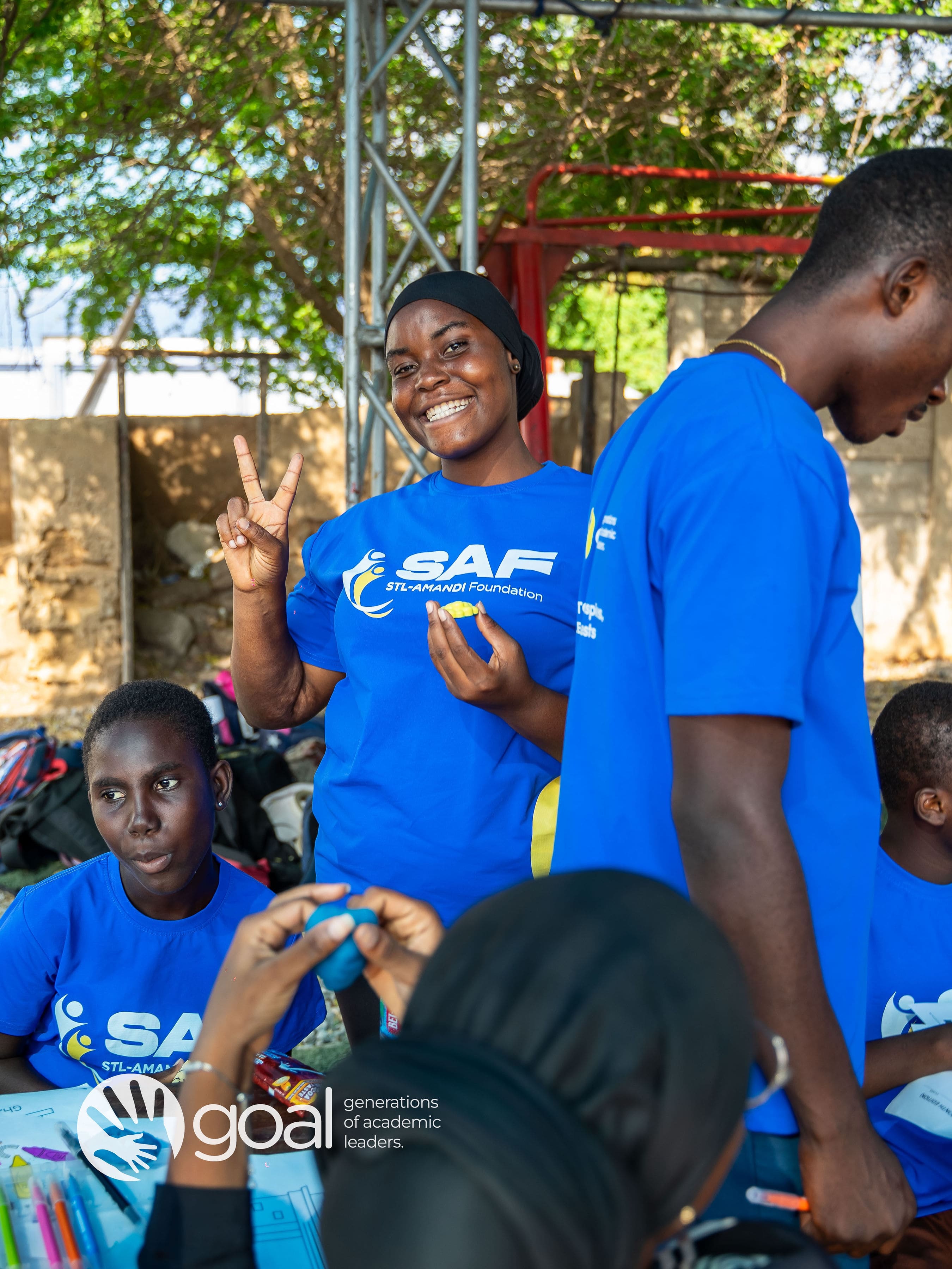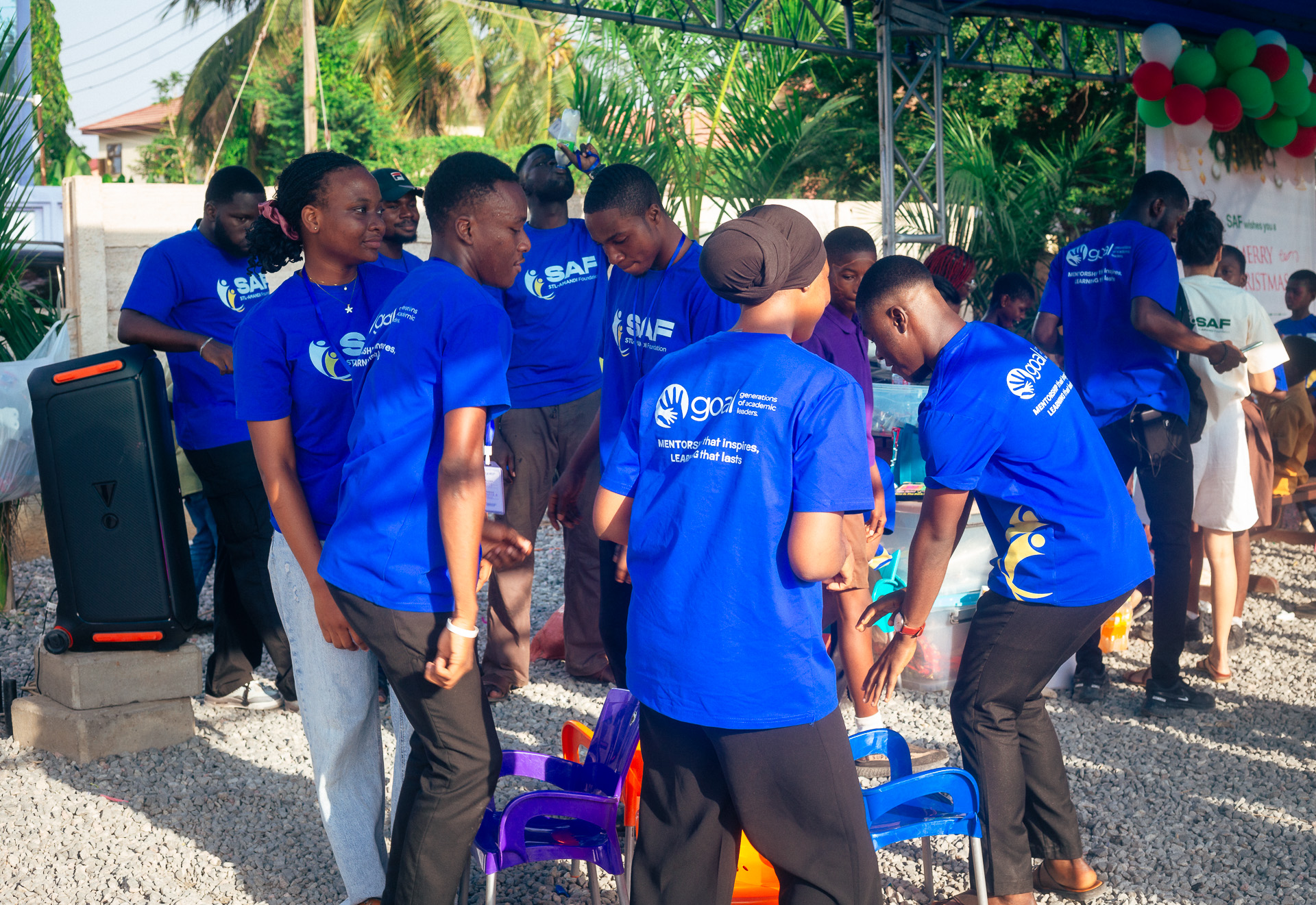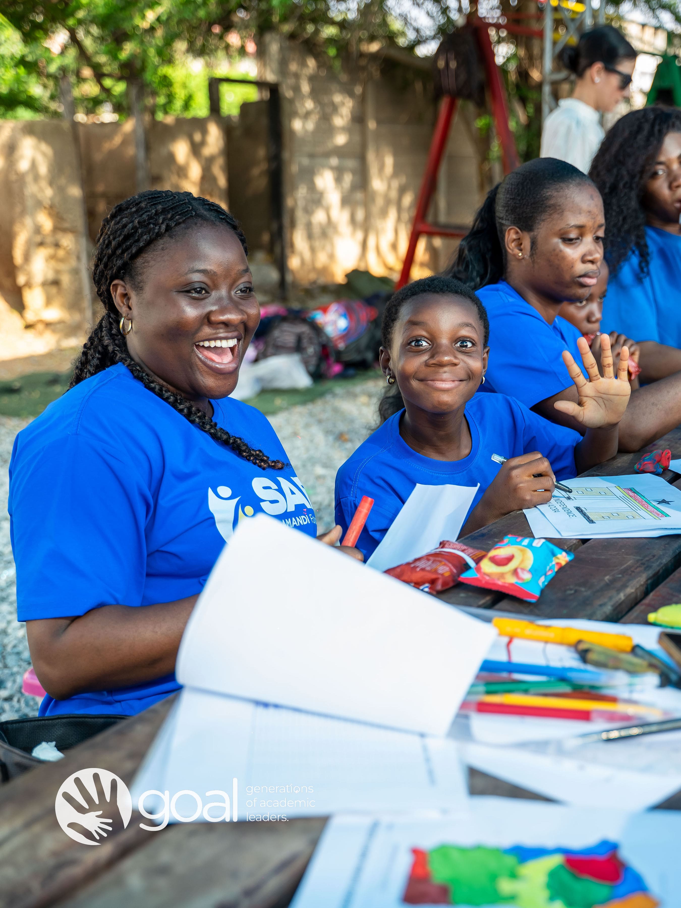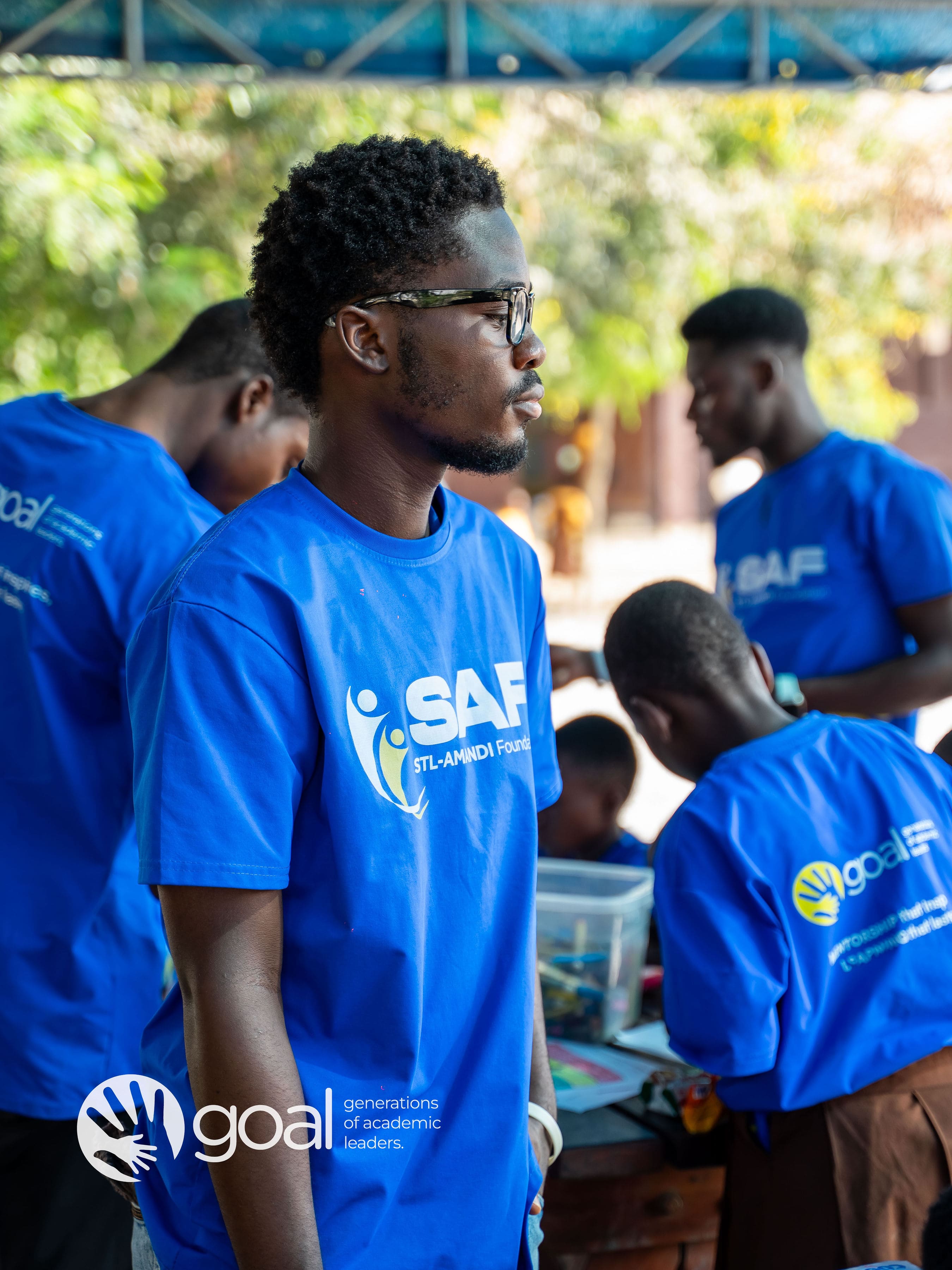 GOAL is an SAF initiative that connects university and college students with pupils in underserved primary schools in Accra, providing one-on-one or one-on-two academic and emotional support. Each mentor becomes a “big brother” or “big sister,” helping children feel seen, encouraged, and supported — making a real difference in their educational journey.