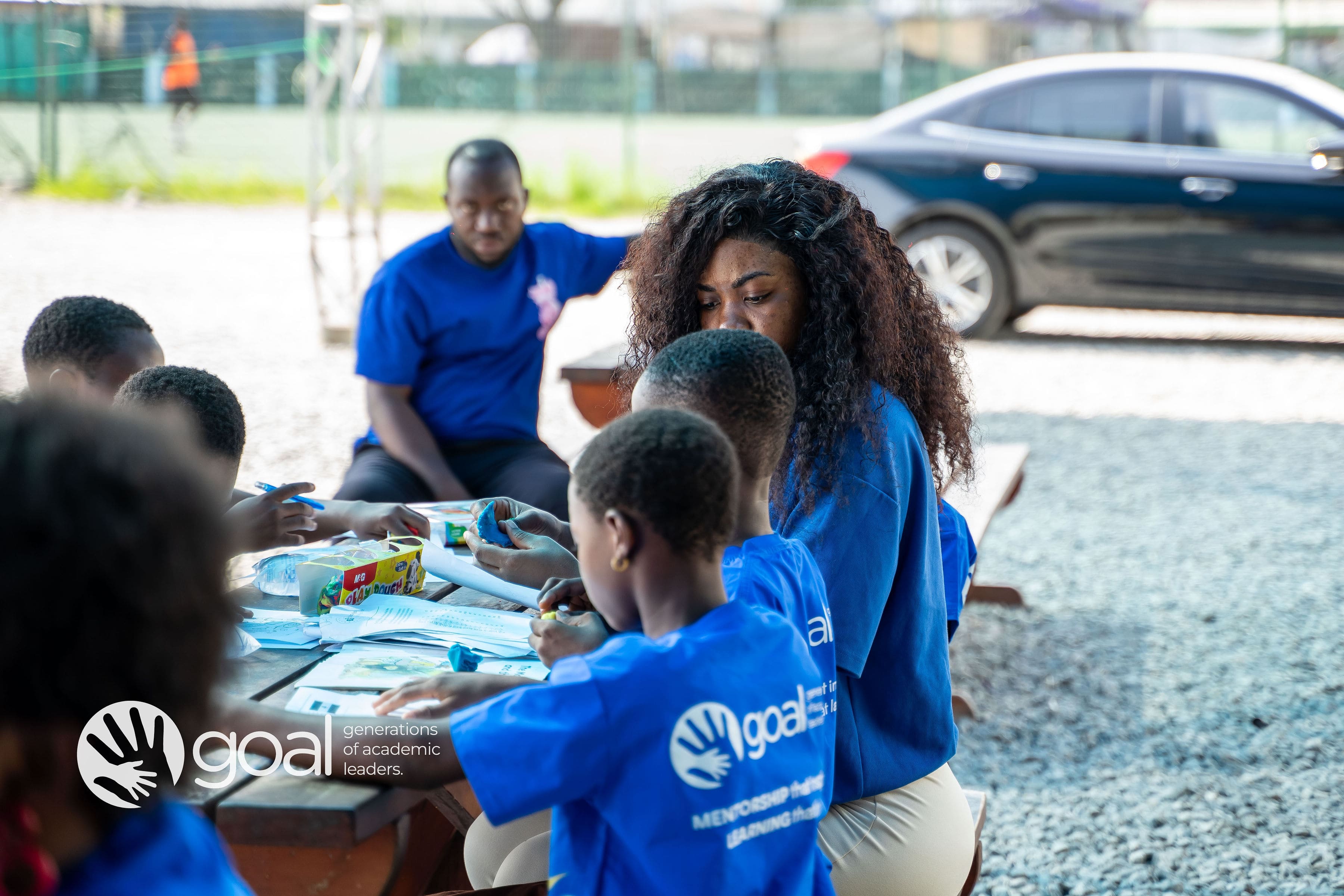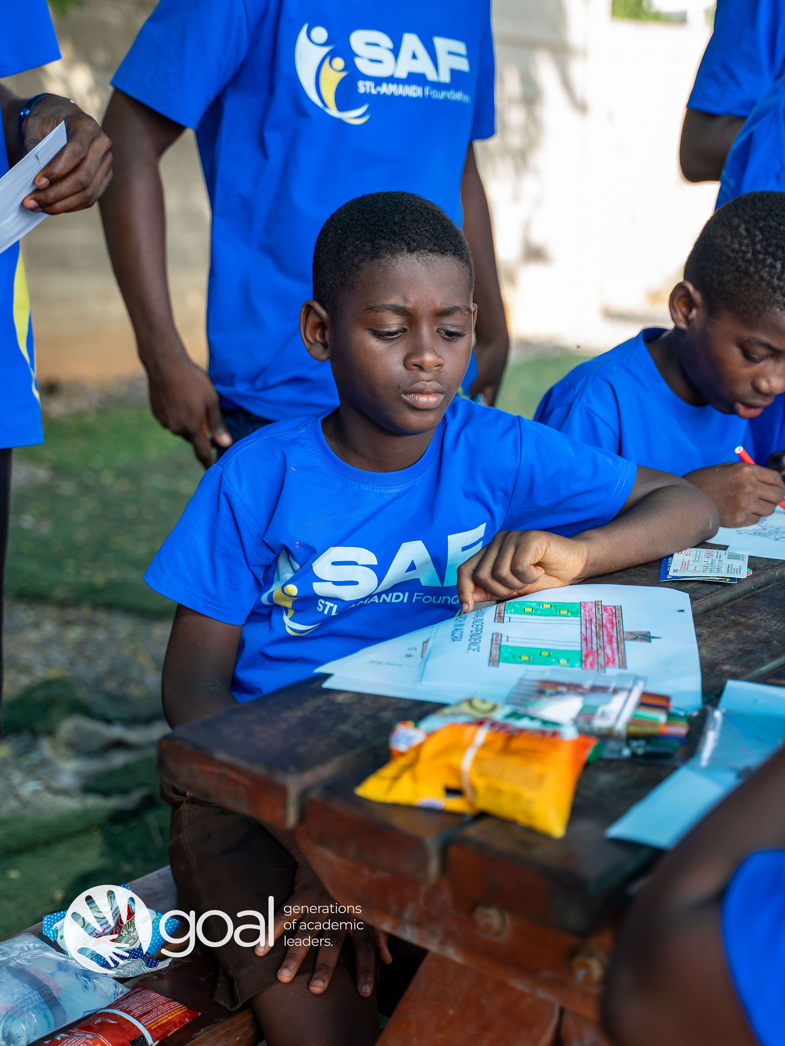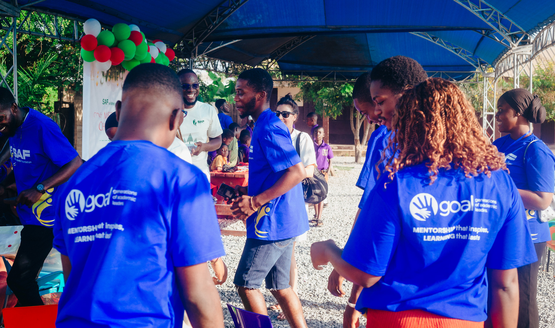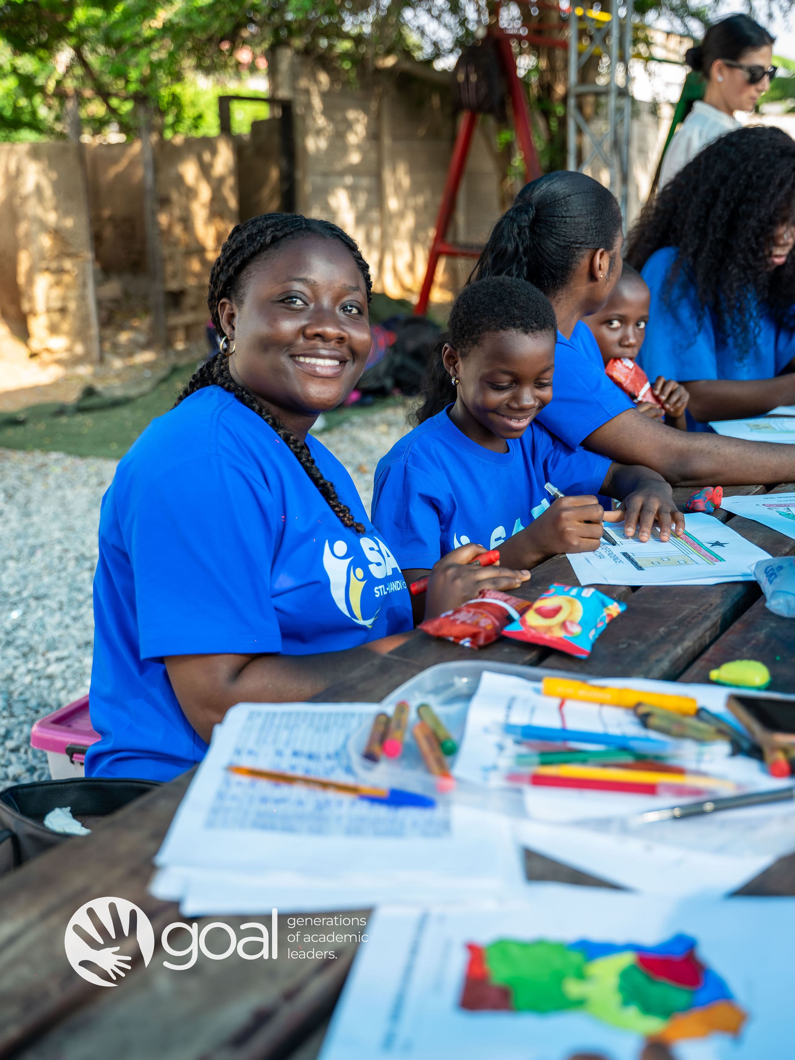 GOAL is an SAF initiative that connects university and college students with pupils in underserved primary schools in Accra, providing one-on-one or one-on-two academic and emotional support. Each mentor becomes a “big brother” or “big sister,” helping children feel seen, encouraged, and supported — making a real difference in their educational journey.
