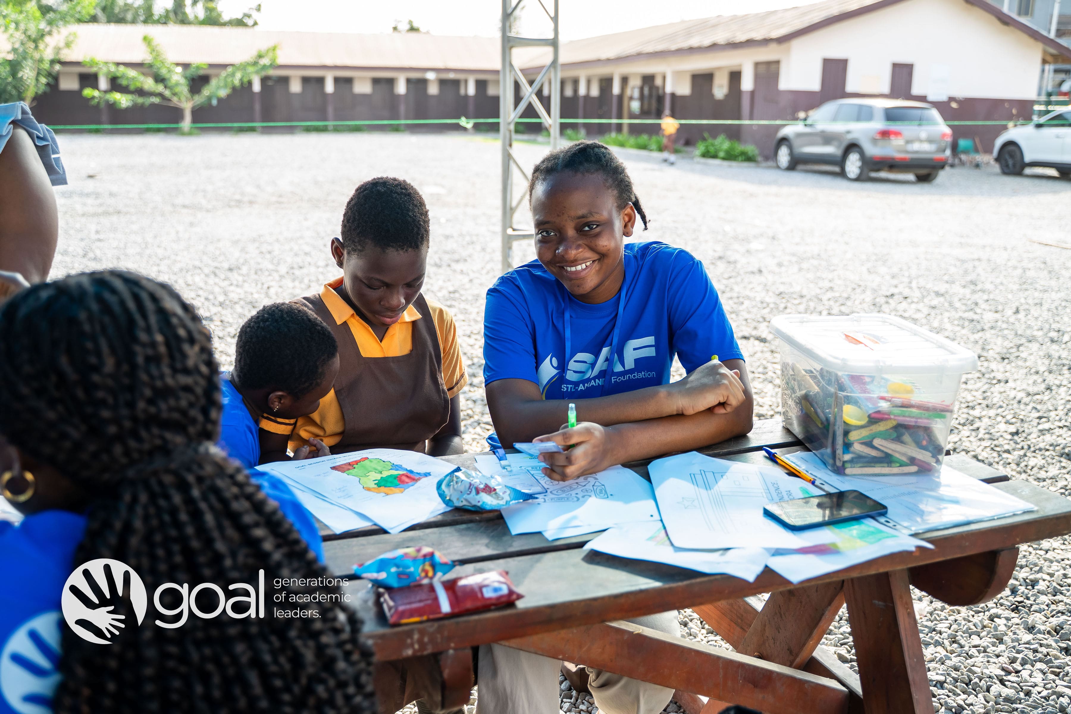 SAF employs two full-time employees in Dzorwulu A& B primary school. The employees who are in school on a daily basis are in charge of various extremely important aspects of SAF‘s activities in the school; the library, the feeding program, the volunteers, and the kids who take part in SAF’s Goal project.